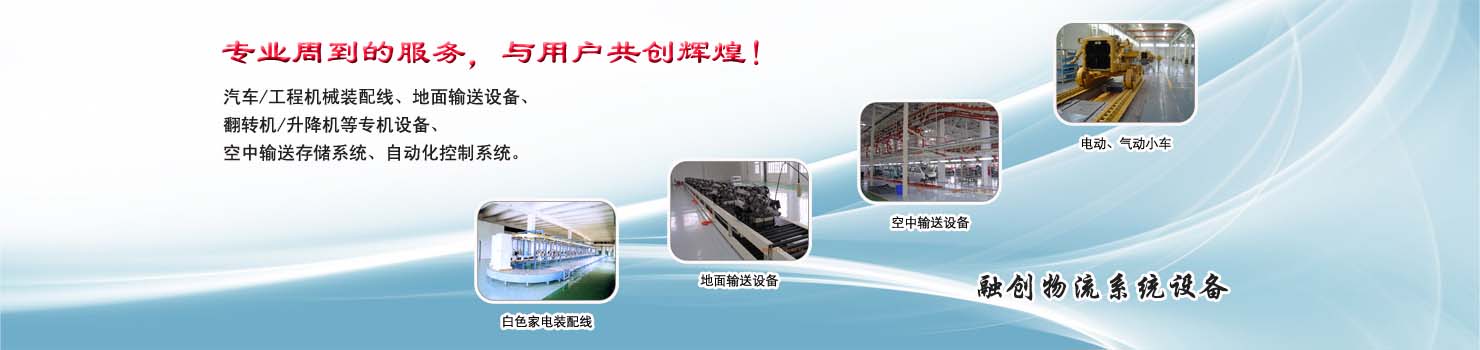 無(wú)錫市融創(chuàng)物流系統(tǒng)設(shè)備有限公司專(zhuān)業(yè)從事物流輸送設(shè)備、各類(lèi)裝配流水線設(shè)備、各類(lèi)生產(chǎn)非標(biāo)專(zhuān)機(jī)設(shè)備和自動(dòng)化控制系統(tǒng)的專(zhuān)業(yè)生產(chǎn)企業(yè)。廣泛應(yīng)用于轎車(chē)、卡車(chē)、客車(chē)、各類(lèi)工程機(jī)械、發(fā)動(dòng)機(jī)、車(chē)橋、農(nóng)業(yè)機(jī)械、郵政、家電等行業(yè) ...... >> more >>